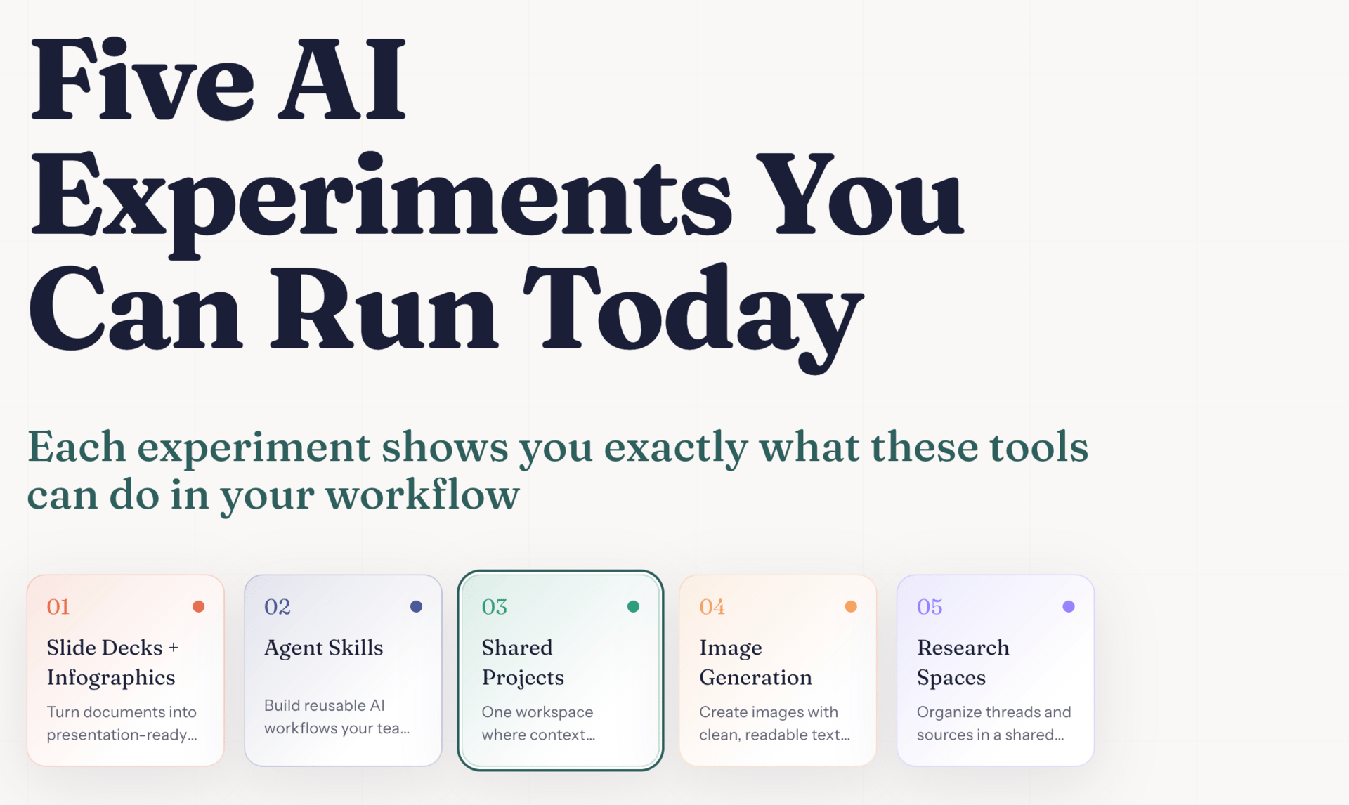 This experimentation ‘lab’ I created closes that gap. Five experiments. Thirty minutes each. Very quickly, you'll know which capabilities work for your workflow.