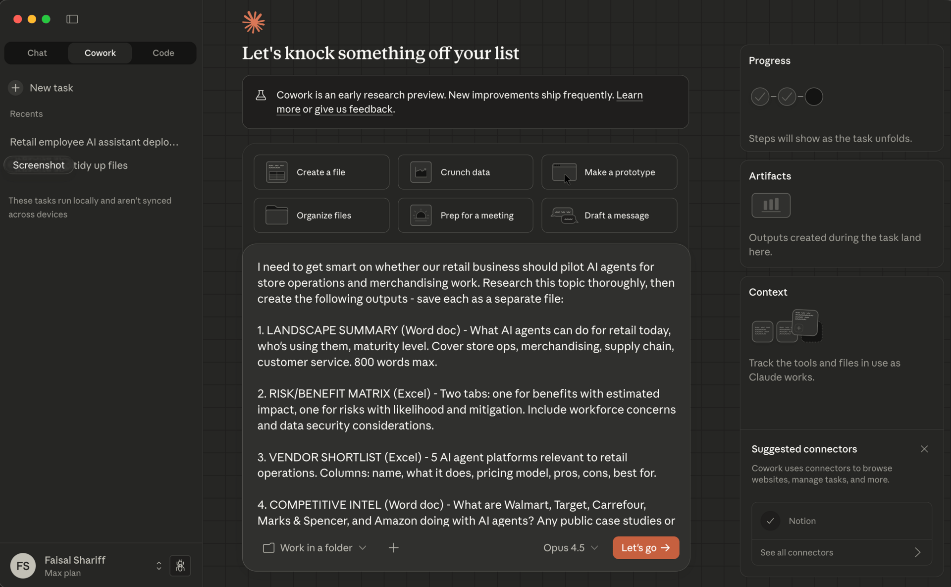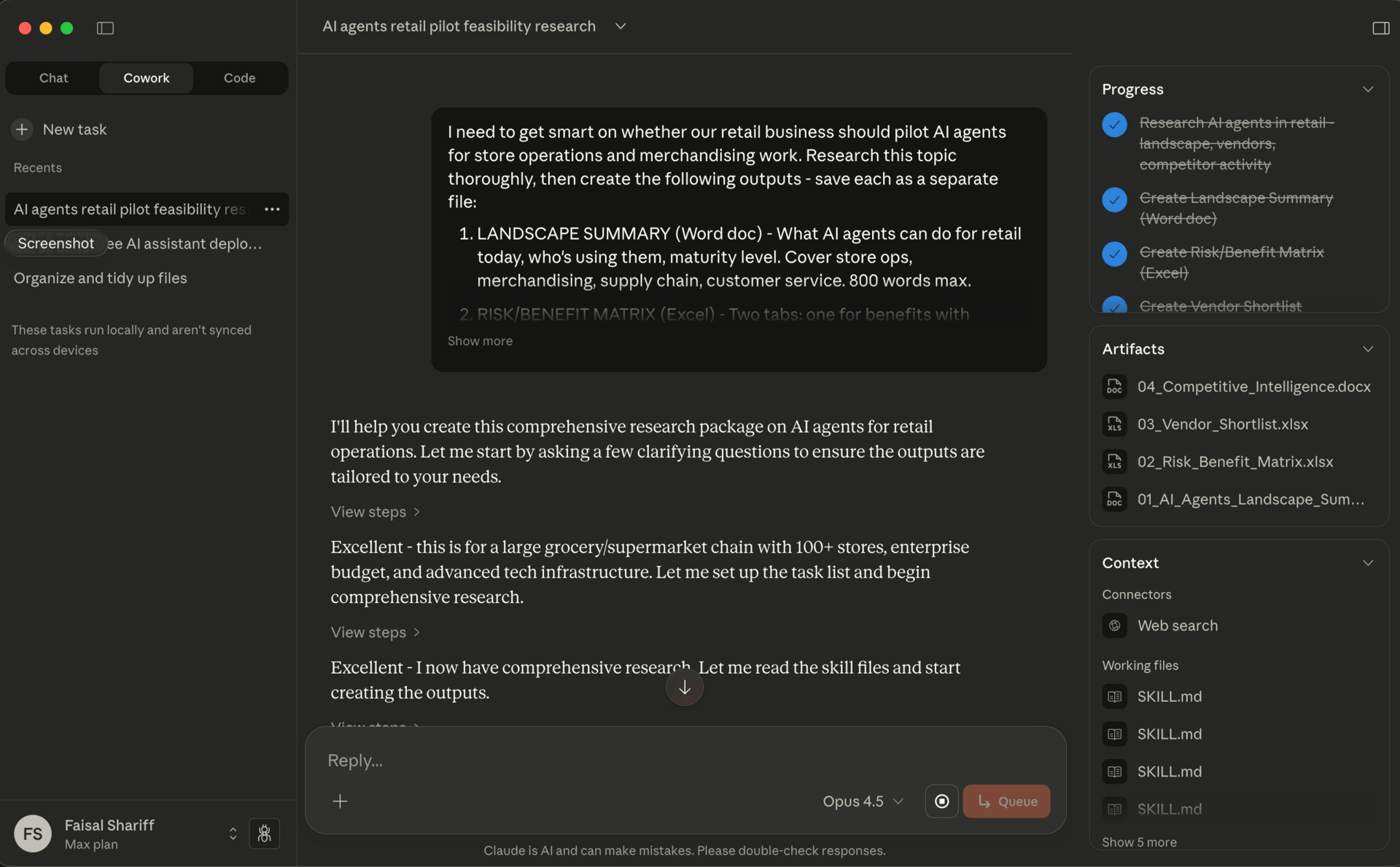I showed this to a few colleagues last week. I pointed Cowork at a folder of meeting notes and queued: extract the key decisions - create an Excel tracker with owners and deadlines - draft the follow-up email with the tracker attached.